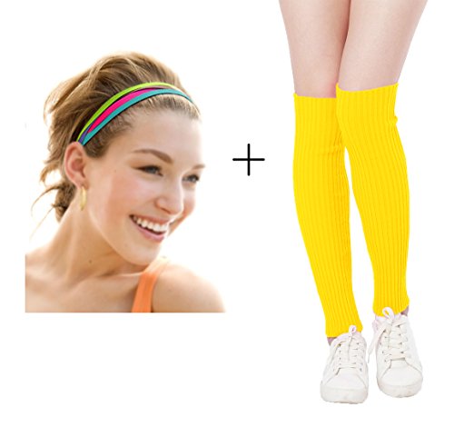 -. Feature : Package Included : 1 pair of Leg Warmers + 5pcs Colorful Headbands / Ladies Fashion Leg Warmer -- Great for 80's Party/Costume Play/Yoga Sport/Fitness / Casual Dresses / Halloween .Made of 80% Viscose 20% Nylon . Length: 18'' / Stretchy Head Band -Soft and Elastic, Anti-slip Design .One size Fits Most. / Machine Washable at Cold Water; Hang Dry
