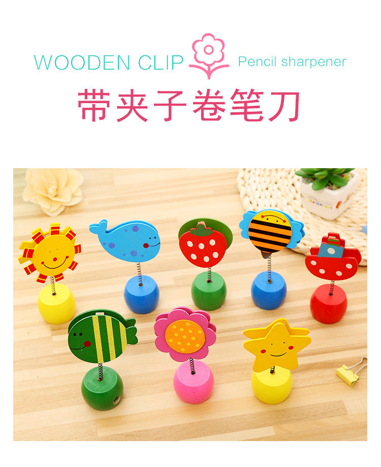 韩版名片夹卷笔刀带夹子木质手摇铅笔刀削笔器小学生学习文具用品
