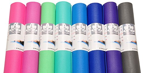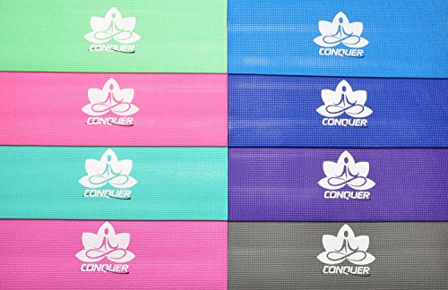 Our Conquer deluxe yoga mat is 1/4" thick for comfort and features vibrant colors and double sided non-slip surfaces. It's an extra long 72" to accommodate all users. It's eco friendly containing no phalates, silicone or latex. The PVC material is durable and easy to care for.