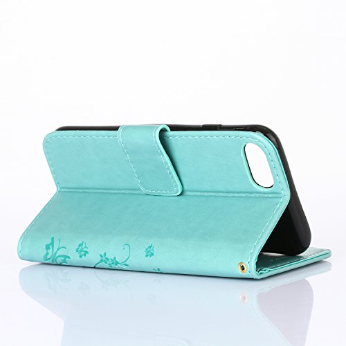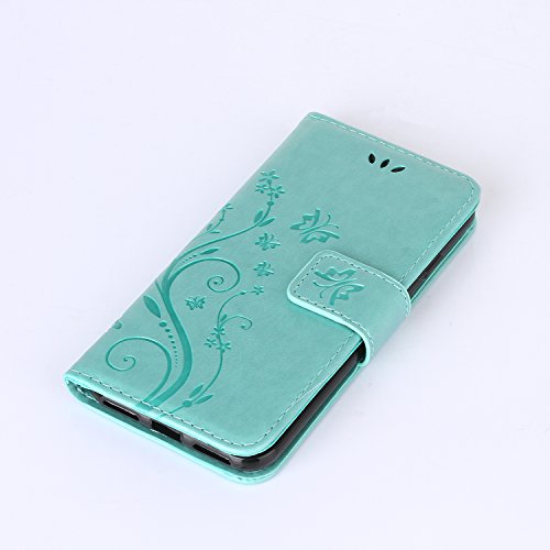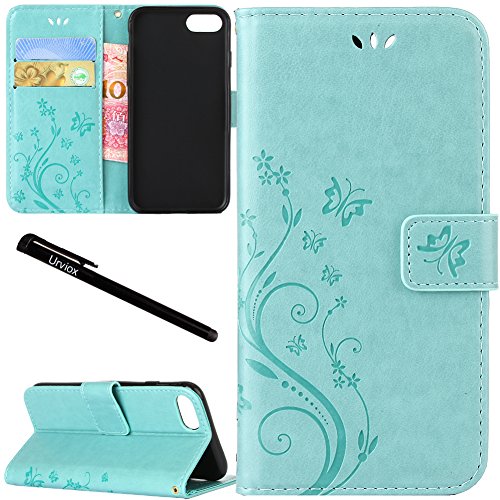 iPhone 7 / iPhone 8 Case, Urvoix Card Holder Stand Smooth Hand Feel PU Leather Wallet Case - Embossed Flower Butterfly Flip Cover for 4.7" Version iPhone 7 / iPhone 8 (NOT for 7Plus) Green