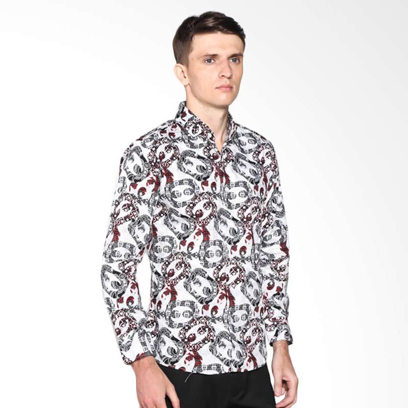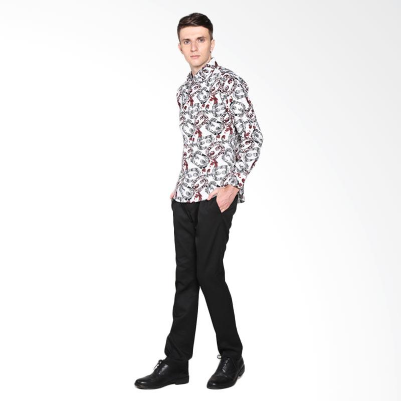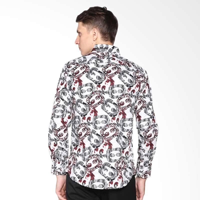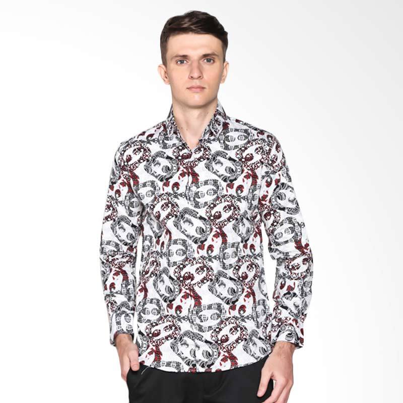 VM B-186 casual Slimfit Tangan Panjang Kemeja Batik - White Grey