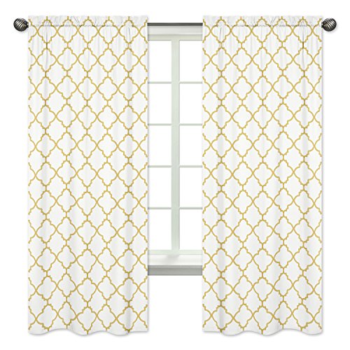 Sweet Jojo Designs 2-Piece White and Gold Trellis Collection Window Treatment Panels