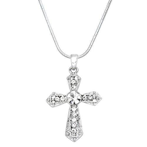 -. Title : Cross Pendant Necklace Rhinestone Crystal High Polished Rhodium J0461-CR