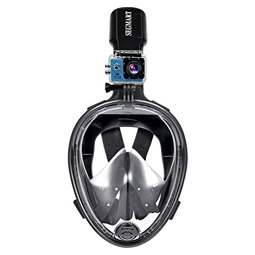 SEGMART Seaview 180° Panoramic Snorkel Mask - EasyBreath Snorkeling Mask Full Face,Anti-Fog,Hypoallergenic Silicone Facial Lining (Black, S/M)