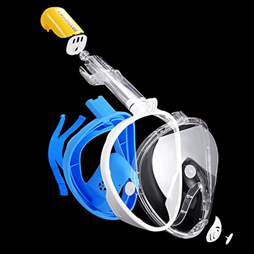 SEGMART Seaview 180° Panoramic Snorkel Mask - EasyBreath Snorkeling Mask Full Face,Anti-Fog,Hypoallergenic Silicone Facial Lining (Blue, L/XL)
