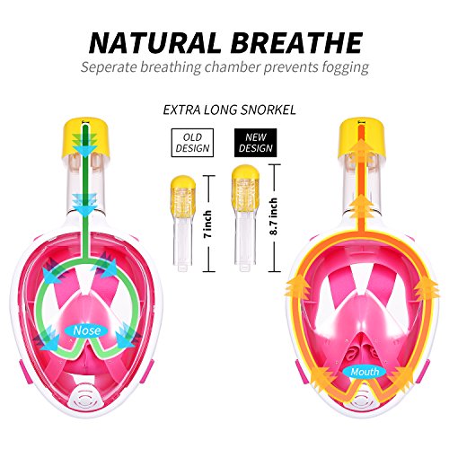 SEGMART Seaview 180° Panoramic Snorkel Mask - EasyBreath Snorkeling Mask Full Face,Anti-Fog,Hypoallergenic Silicone Facial Lining (Pink, S/M)