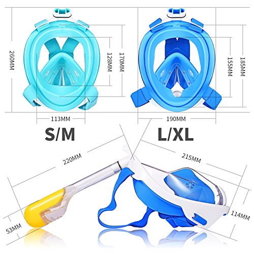 SEGMART Seaview 180° Panoramic Snorkel Mask - EasyBreath Snorkeling Mask Full Face,Anti-Fog,Hypoallergenic Silicone Facial Lining (Blue, S/M)