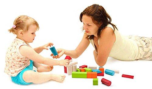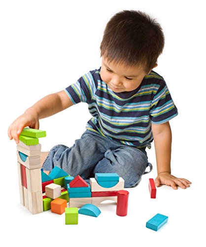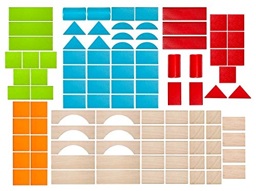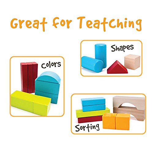 -. Feature : 100 wooden blocks in 5 bright colors and 9 fun shapes / Stack them up, and knock them down! / Develops fine motor skills, spatial relationships, teaches shapes, colors, sorting and more / Solid wood, sanded smooth. Safe and long-lasting / All pieces fit perfectly into included canvas carrying bag. Clean up quick, take your blocks with you!
