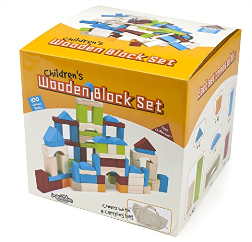 -. Title : 100 Piece Wooden Block Set with Carrying Bag by Imagination Generation