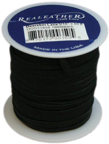 Realeather Crafts Deerskin Lace, 0.125-Inch Wide 50-feet Spool, Black