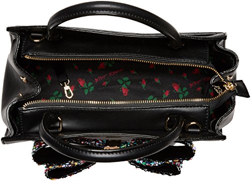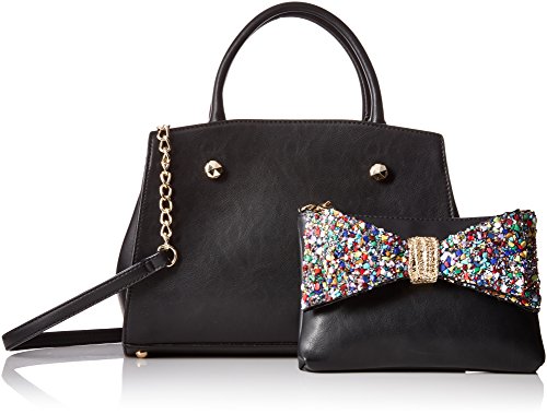 Betsey Johnson top handle satchel bag with rock embellished bow. This bag can be worn 4 different ways with detachable bow and clutch insert.