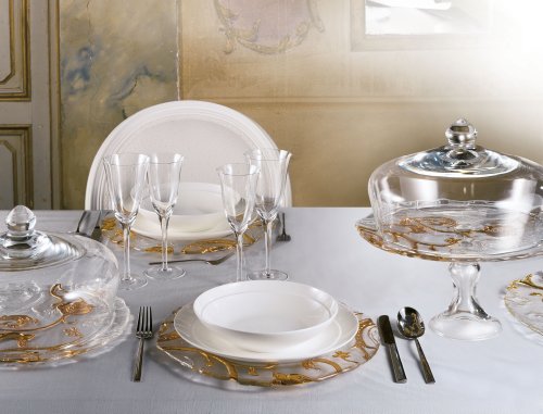 Ivv glassware il giardino segreto (the secret garden) footed cakestand 13-1/2-inch clear with gold decoration