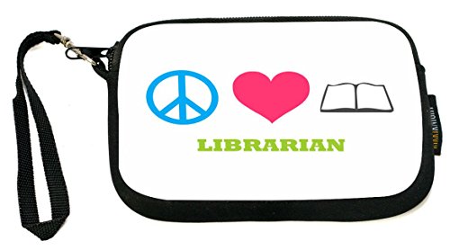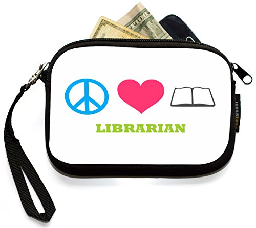 -. Title : UKBK Peace Love Librarian - Neoprene Clutch Wristlet with Safety Closure - Ideal case for Camera, Cell Phone, Gameboy, Passport, Cosmetics case, Universal Cell Phone Case etc..