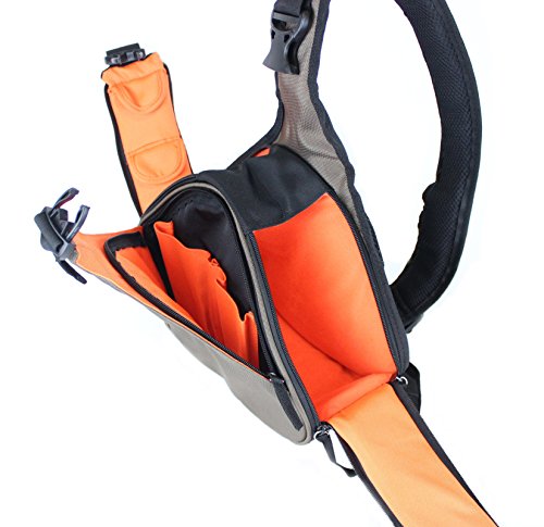 -. Feature : コンパクトながら収納容量をしっかり確保したスリングバッグ カジュアル感覚の落ち着いた印象なので普段の街使いとしても取り入れられ女性でも持ちやすいシンプルなデザイン / メインとなる収納部はクッション素材を使用していおり、付属の可動式仕切りインナークッションを利用して、カメラ、レンズ、フィルター、バッテリー、充電器、メモリーカード、ケーブルなどのカメラ機器など、おしゃれなカメラケースとしての使用はもちろん、財布や携帯電話,ペットボトル、MP3プレーヤーや電池など小物類の収納にも便利。 / ショルダーベルトは肩への負担を軽減するパッド付き、表面はナイロン素材で突然の雨でも収納物を守ります。付属のレインカバーを利用すれば、より強い雨や砂塵などの汚れなどから保護します。 / 腰ベルトを使えばスリングバッグを体に固定してボディバッグのように使用できます。開閉はダブルジッパーストラップにより便利にカメラなどを取り出すことができます。