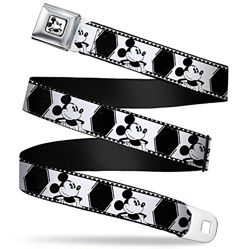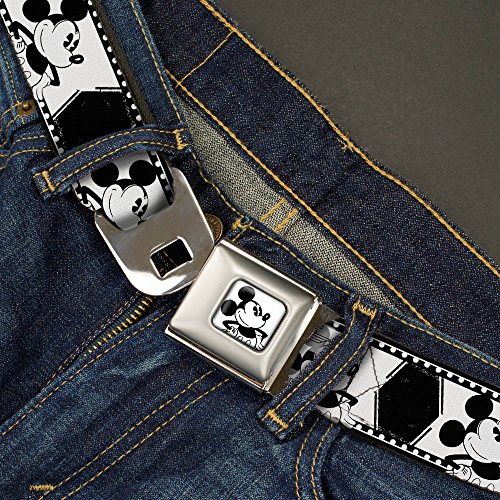 | (Buckle Down)/Accessories/Belts Buckles/DIRECT FROM USA/Mickey Standing Pose Film Strip White/black Seatbelt Belt |