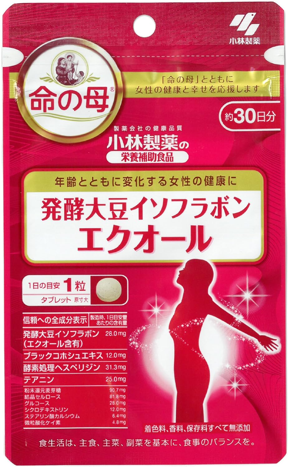 発酵大豆イソフラボンエクオール 内容量:30粒 1日1粒を目安に 主要成分:大豆 原産国:日本 商品サイズ (幅×奥行×高さ) :100mm×10mm×165mm ※妊娠・授乳中の方は摂らないでください。