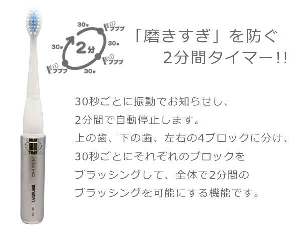 | 約24000/分ブラシストロークの高速&微細な音波振動で歯垢をしっかり除去!!また、2分間ナビタイマーで「磨きすぎ」を防ぎます。キャップ付きなのでオフィスやお出かけ先でもご使用いただけます。 |