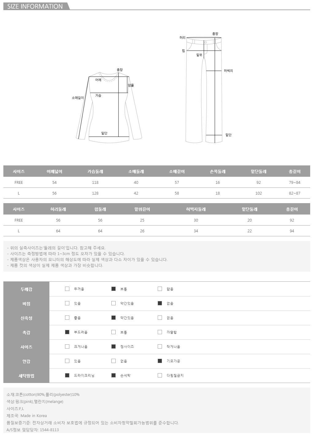 사이즈도 F,L로 선택하실 수 있어