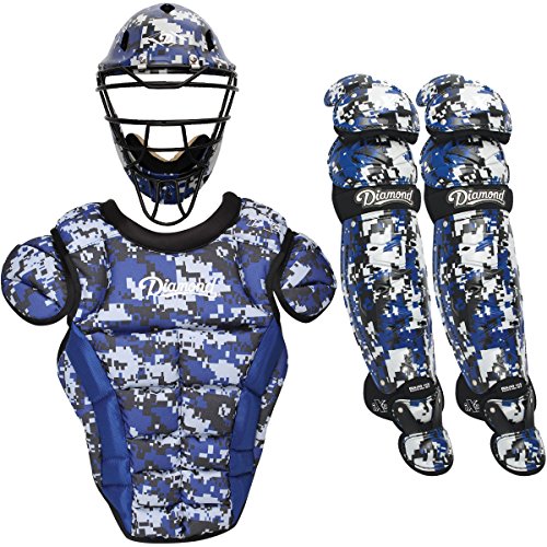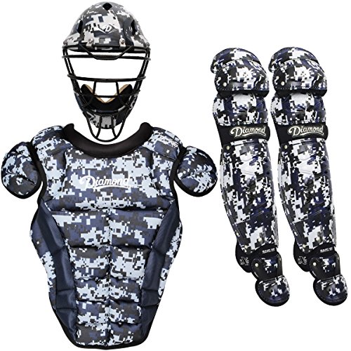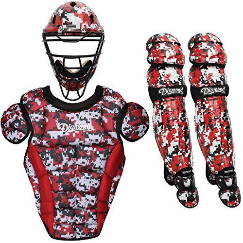 Studio : Diamond Publisher : Diamond Binding : Misc. Product Description Gear-up with the iX5 Camo adult baseball catcher's package from Diamond. Featuring the iX5 Edge mask with diamond-weave pattern and iX5 chest protector and leg guards. The iX5 catcher's set offers superior protection and comfort, plus a professional look. Recommended for ages 16 and up. iX5 Edge Helmet: Model DCH-EDGE IX5 - Hat Size: 7 1/8 - 7 1/2 Lightweight impact-resistant shell Exclusive iX3 Diamond-Weave pattern Ultra-light frame with improved vision bars Replaceable mesh multi-layer foam padding liner Adjustable soft leather chin pad 4-way adjustable back cap Includes 4 inch throat guard and drawstring storage bag Meets NOCSAE standard iX5 Shin Guards: Model DLG-IX5 165 - Size: 16 1/2 Inch Triple knee protection Fully ventilated wrap around shin Breathable gun metal grey padding Compressed knee comfort Impact resistant plastic clips Removable toe extension iX5 Chest Protector: Model DCP-IX5 XL - Size: 18 1/2 Inch Vented iX3 triple layer low-rebound padding Removable molded pro shoulder caps Adjustable X-back comfort harness with 4-way stretch Fully wrapped padded neck-roll for comfort 0