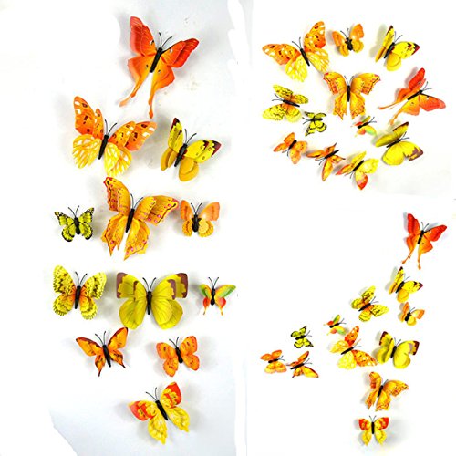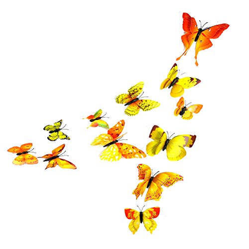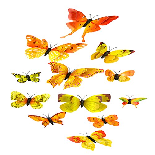 Butterfly Fridge Magnets and Wall Stickers Etop Double Stack Structure Pack of 12 (yellow)