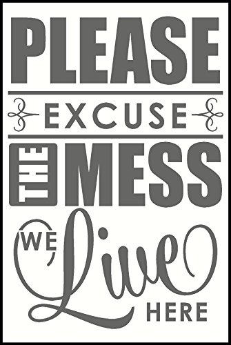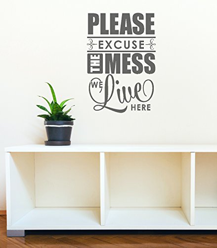Wall Decor Plus More WDPM3324 Please Excuse the Mess We Live Here Home Decor Wall Decal Sticker for Parents and Kids, 23 x 16-Inch, Storm Gray