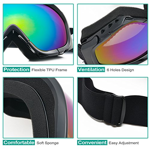 Double Anti-Fog & UV Protection Lens: Made of double lens, the outer one is UV400 protection and the inner one is anti-fog design. And as the double lens design, it accelerates the air circulation that you will get a clear visibility even in foggy and cloudy days. What's more, the lens is plating into colorful lens, make it much fashion and suitable for most conditions.
