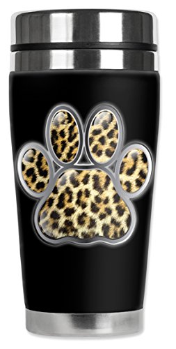 Mugzie 877-MAX "Leopard Paw" Stainless Steel Travel Mug with Insulated Wetsuit Cover, 20 oz, Black
