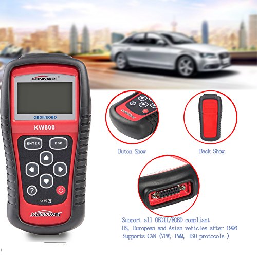 - KW808 OBD2 Diagnastic : Easy-to-use, this hand-held scanning tool enables fast and easy access to engine based EOBD Fault codes, allows you to carry out a quick test on the engine system of OBD II vehicles.