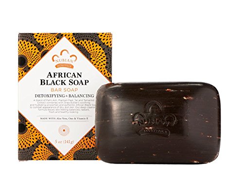The Nubian heritage African black soap line combines the ancient medicinal properties of black soap with the hydrating properties of shea butter to balance problem skin
