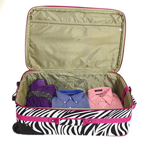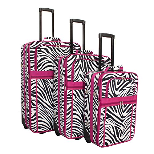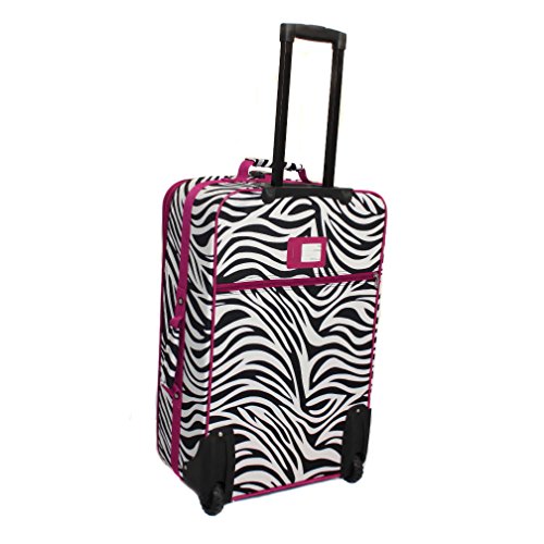Product Description Have a safe travel with this all new bright safari zebra suitcases. This can carry loads of your items safely to your destination since it's durable. A great item to buy. Set Includes: 3 Suitcases, 20-inch carry-on: 20 inches high x 13 inches wide x 8 inches deep, 24-inch upright: 24 inches high x 16 inches wide x 10 inches deep, 28-inch upright: 28 inches high x 18 inches wide x 12 inches deep. Features: Expandable, Locking, Multi-Compartment, Rolling, Fashion, Lightweight, Softside and Durable | Materials: Polyester 0