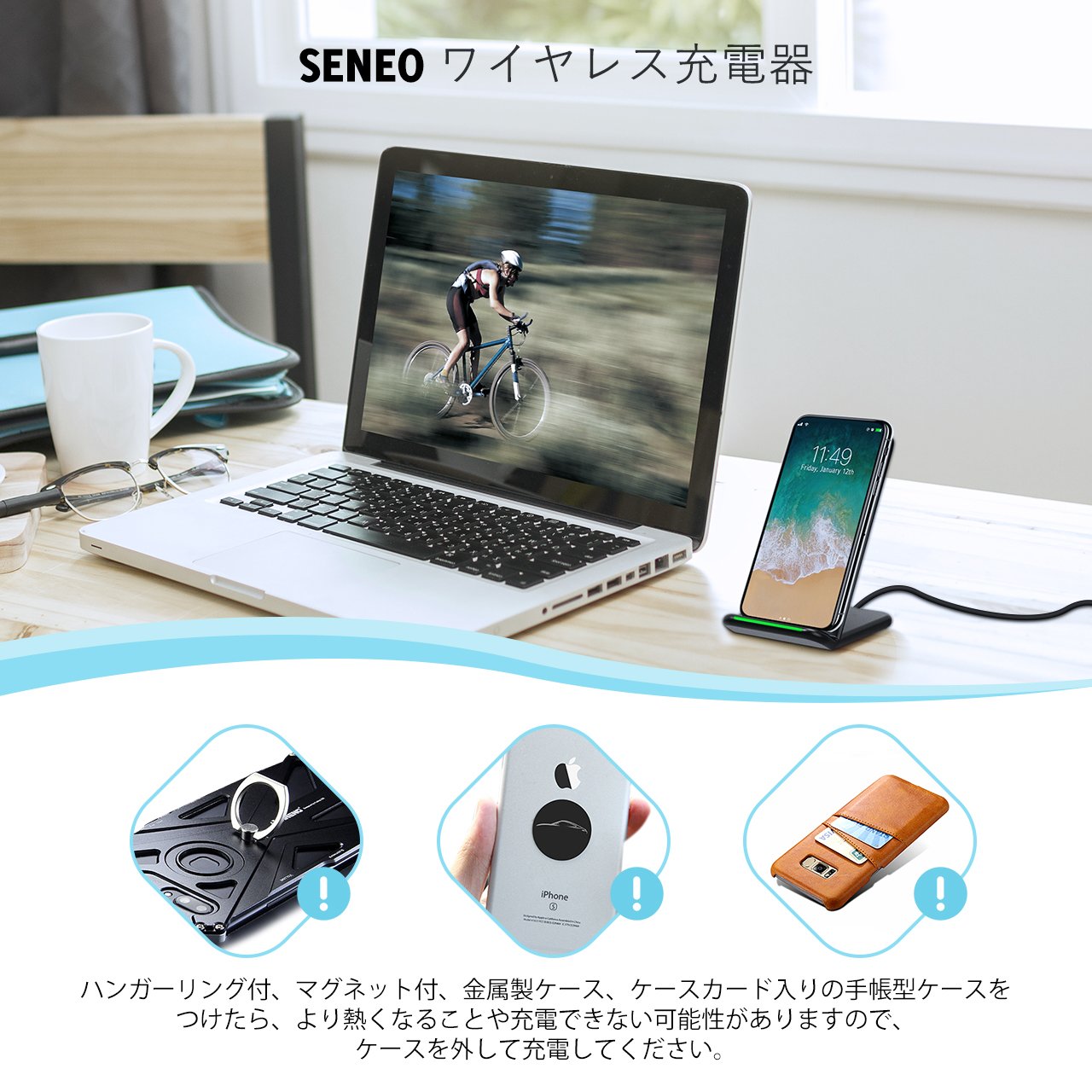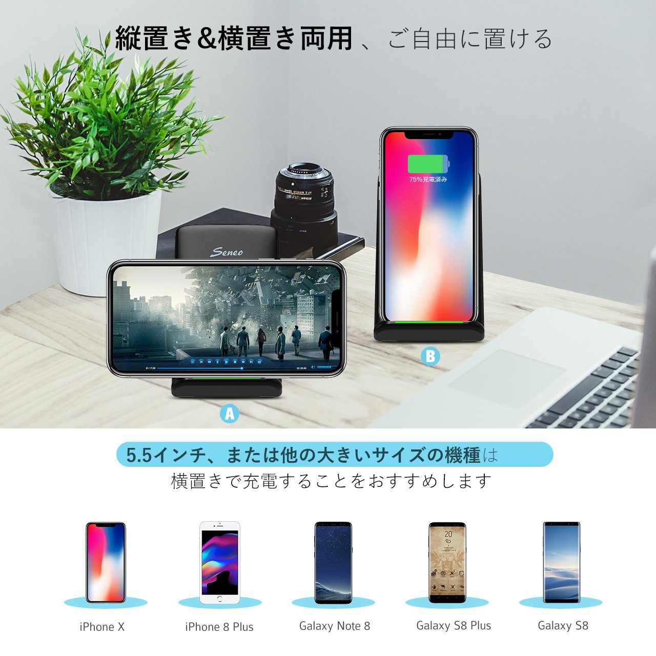 With a maximum output of 9 A, you can charge faster than a conventional wireless charger.