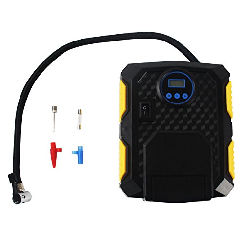 -. Feature : High quality design, the movement of our inflator comes with brass coarse coil that makes it safe, stable, noiseless and durable. / Precise digital air gauge, press ± button to preset the accurate air pressure value before pushing the ON/OFF button to start, it will stop inflating automatically while reaching to the target pressure value. / Our Tire Inflator can be used for 12V Car, Bike, Motorcycle, SUV, ATV and Truck. Also sports equipment and inflatable. / Extended 9.8ft(3m) power cord, enough length for providing easy access to all tires, no mess, no clutter, easy to put away. Bright LED light allows for night use. / Capable of inflating a mid-sized car tire from flat to 30 Psi in within 8 minutes. Max pressure 150 Psi. Heavy duty compact design uses high quality materials and manufacturing techniques which ensure long service life.
