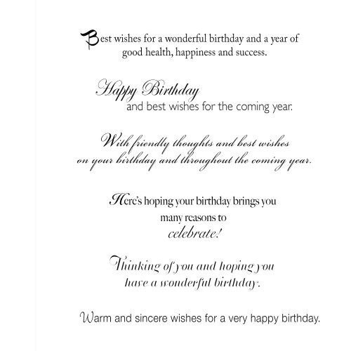SEND A MESSAGE WITH VERSES THAT INSPIRE. Each happy birthday card has a different verse and each verse is written to provide birthday cheer to the recipient. Select the message that is most appropriate. The verses come in a variety of type fonts, which can be seen in the visual on this page.