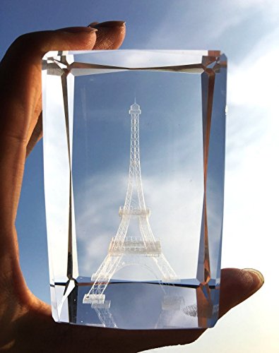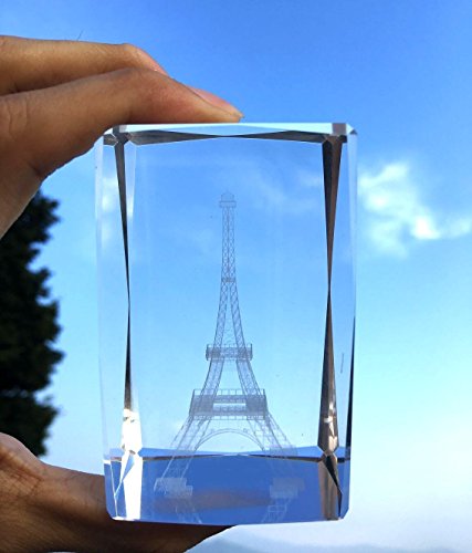 3D Eiffel Tower paperweight(Laser Etched) in Crystal Glass Cube Birthday / Christmas Romantic Gifts(No included LED base)(3.2x2.1x2.1")