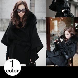 ファー付きコート エレガント フレア袖 ファー付き アウター コート ミディアム丈 ボリュームファー 冬