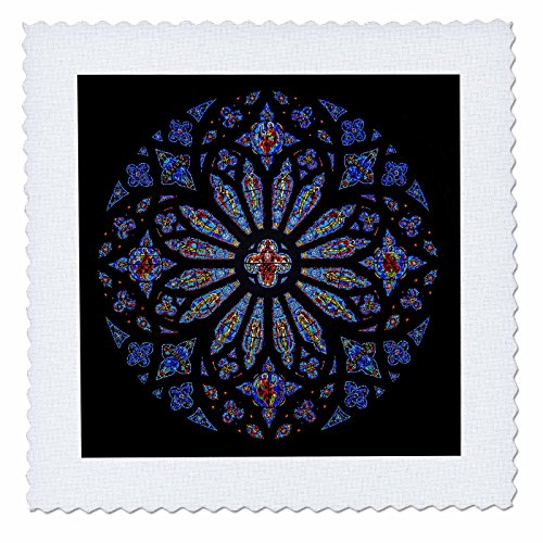 3dRose qs_123813_4 Stained Glass Rose Window Cathedral Quilt Square, 12 by 12-Inch
