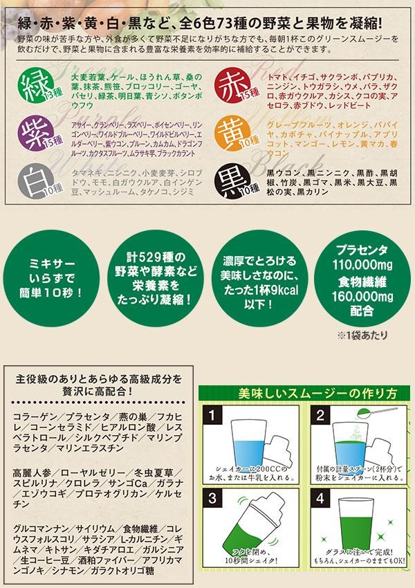 付属のシェイカーで10秒シェイクするだけ!!野菜や果物をたっぷり凝縮した濃厚なスムージーです。 |