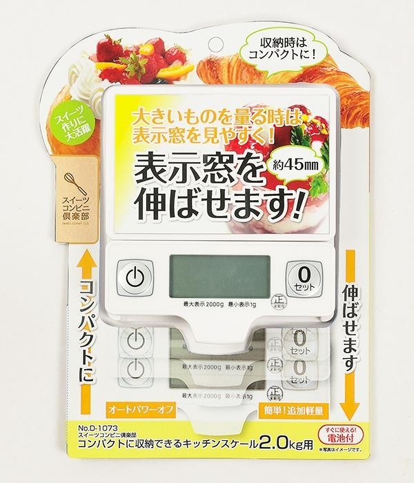 | 仕様 | 最大目量:2000g 目量:1g 電源:単4電池2本(モニター電池付) オートオフ:約120秒 |