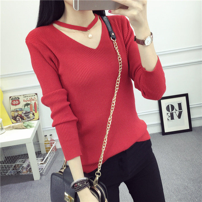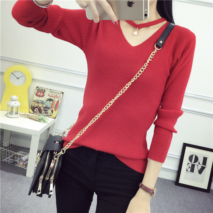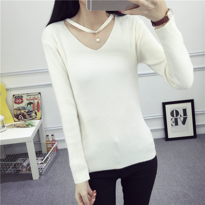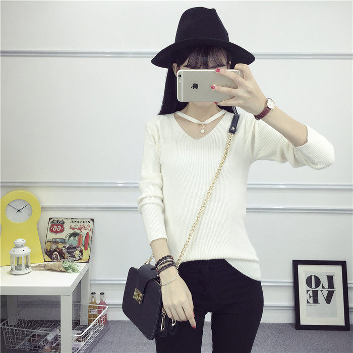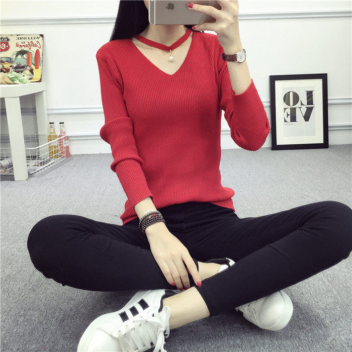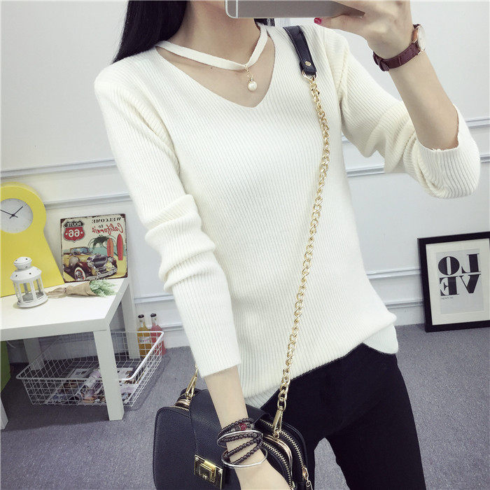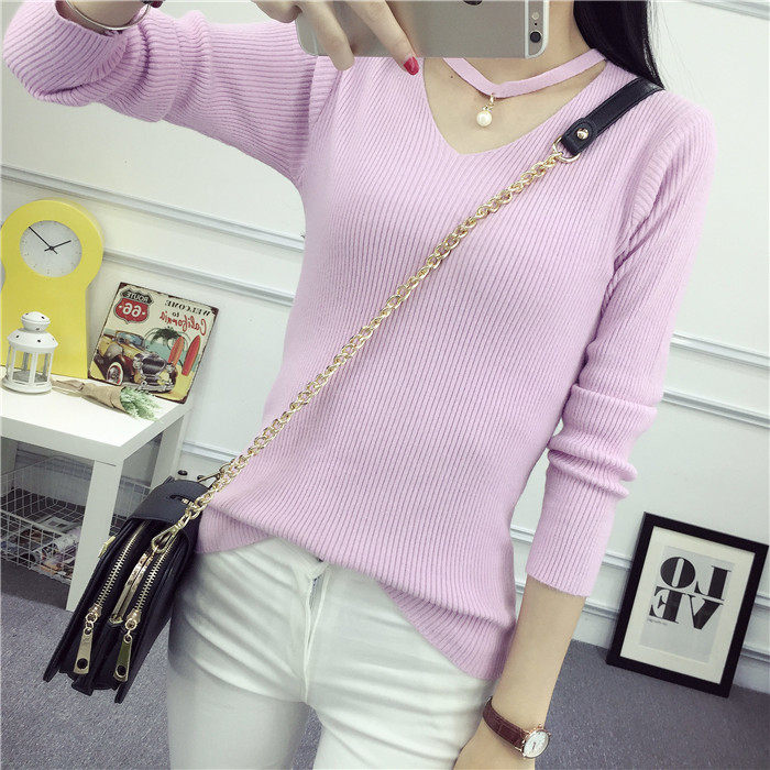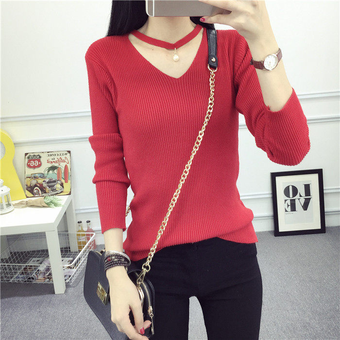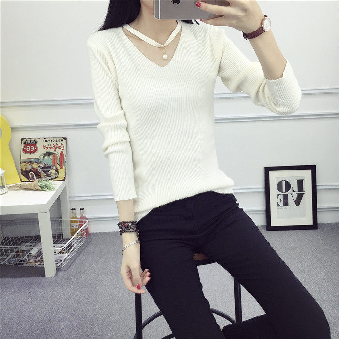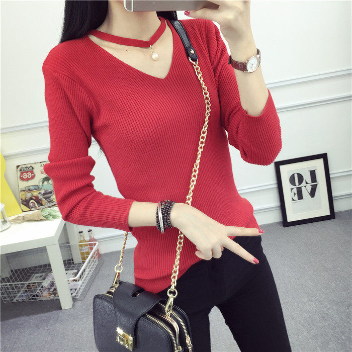 秋新款韩版镂空纯色女针织衫韩范学生体恤修身百搭长袖毛衣打底衫