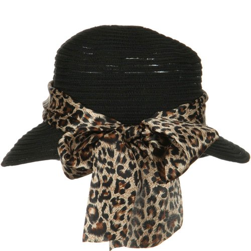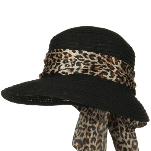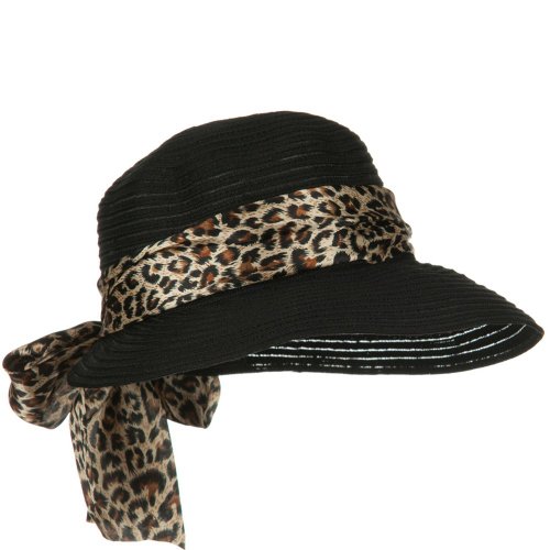 Studio : e4Hats.com Publisher : e4Hats.com Binding : Apparel Product Description Our Black Woman's Polybraid Wide Front Brim Hat with Leopard Scarf Tie is great sun protection hat for ladies this summer. For those who are animal print lovers, you will fall in love in this polybraid sun block hat as leopard print scarf tie band is featured around the hat. As this ladies sun hat features vented and cool material with slightly downturned brim, hat offers you both summer look and feel. Wonderful woman's headwear with stylish leopard print scarf tie band for the days you have to stay under hot sun. Available in 3 great colors. Made of 100% polyester. ONE SIZE fits most, fitting up to 7-1/4. Crown measures 3 1/2 inches deep, with leopard print band. Front brim measures 13 inches wide, 4 inches long. Thick, stiff, vented and cool material. Hand wash only. Available in black, brown and tan. Imported 0
