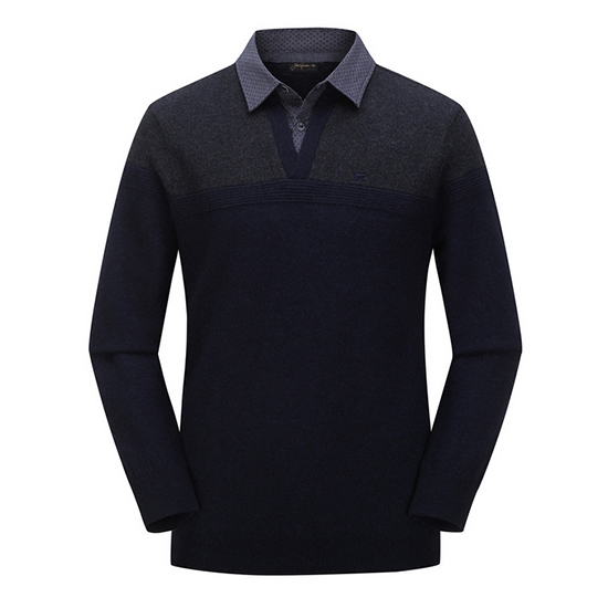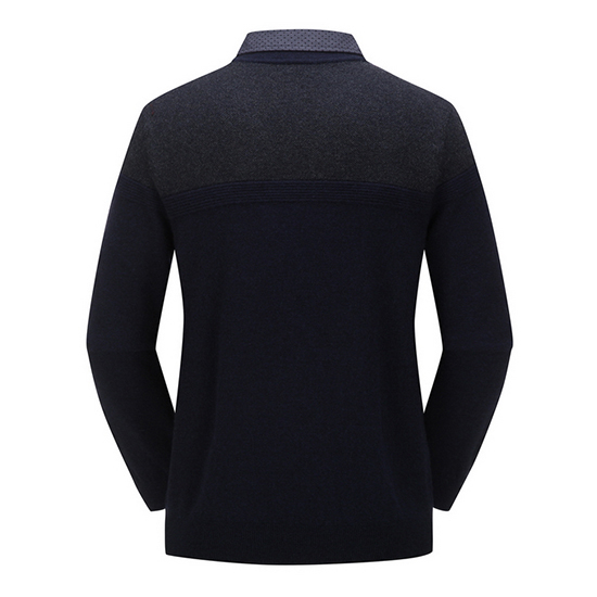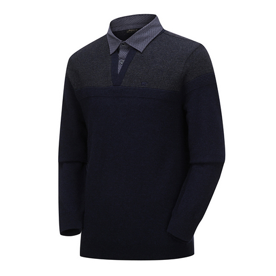 - 블록 디자인의 도트 패턴 셔츠를 레이어드한 남성 니트.