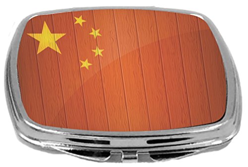 Rikki Knight Compact Mirror on Distressed Wood Design, China Flag, 3 Ounce