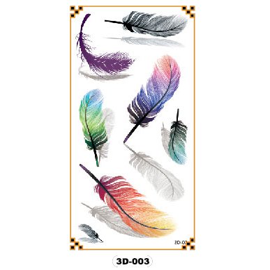 -. Title : Oottati 3D Assorted - Colorful Fluttering Feather Reflection Temporary Tattoo