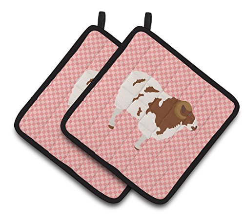 Caroline's Treasures BB7975PTHD Jacob Sheep Pink Check Decorated Pot Holder, 7.5" x 7.5", Multicolor