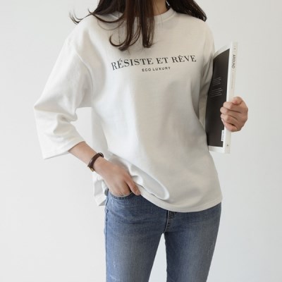 에코 레터링 7부티셔츠 부드러운 터치감과 스무스한 텐션감으로 착용감이 좋은 티셔츠를 소개해드릴게요 전체적으로 여유를 느낄 수 있는 낙낙한 품과 7부 소매 기장으로 체형커버에 효과적이며 쇄골을 가려주는 깔끔한 라운드 넥으로 단정함을 느낄 수 있는 디자인이에요 영문 레터링 디테일로 심플한 포인트를 주었어요 힙을 반정도 덮는 알맞은 기장감으로 인&아웃이 자유로우며 사이즈에 크게 구애받지 않고 두루두루 즐기실 수 있어요