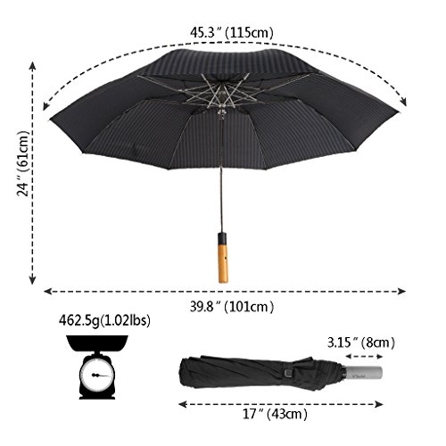 -. Feature : HIGH QUALITY AND SPECIAL FRAME CONSTRUCTION: auto open and close with cute handle Press, transparent runner and invisible spring, easily automatic open and closed when you one hand in Rain, lightly shorted and handily free, hexagonal high-grade steel shaft and sturdy metal frame to provide durability and reliability with this umbrella, strongly,unbreakable,windproof struction / GOOD QUALITY AND DURABLE CANOPY: Fashinal style elegance umbrella Made from 100% polyester pongee with waterproof treatment, good for rain wind sun and UV Protection, quick dry umbrella / HANDLE: Real weed handle (Straight maple) material, with brand logo "KOBOLD" by laser, exquisite and even wood texture showing men's elegant taste,Classic style design,Automatic open at the simple push of a button / DIMENSIONS: Open length: 24 inch, Closed length: 17 inch, Canopy Arc: 45.3 inch, Coverage Diameter: 39.8 inch, Weight: 1.02 lbs / Elegance Packing: Smart compact umbrella with Cute box packed, this best good umbrella is your gifts frist choice! with the thanks giving, christmas day come, you can prepare it for your friends and your family!