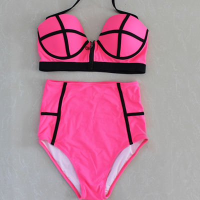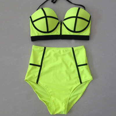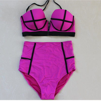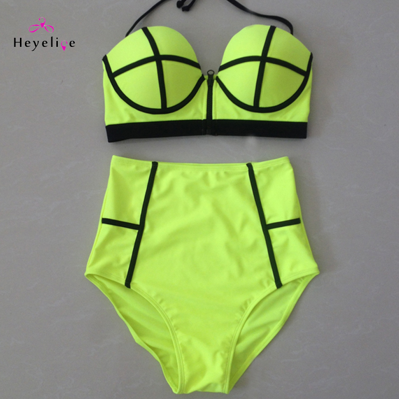 New! High Waisted Bikinis Women Swimsuits Push Up Sexy Bikinis High Waisted Zipper Bathing Suits Fashion Swimwear Retro Biquinis 100% New Brand With High Quality