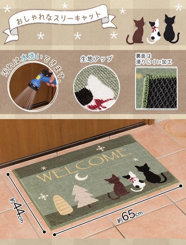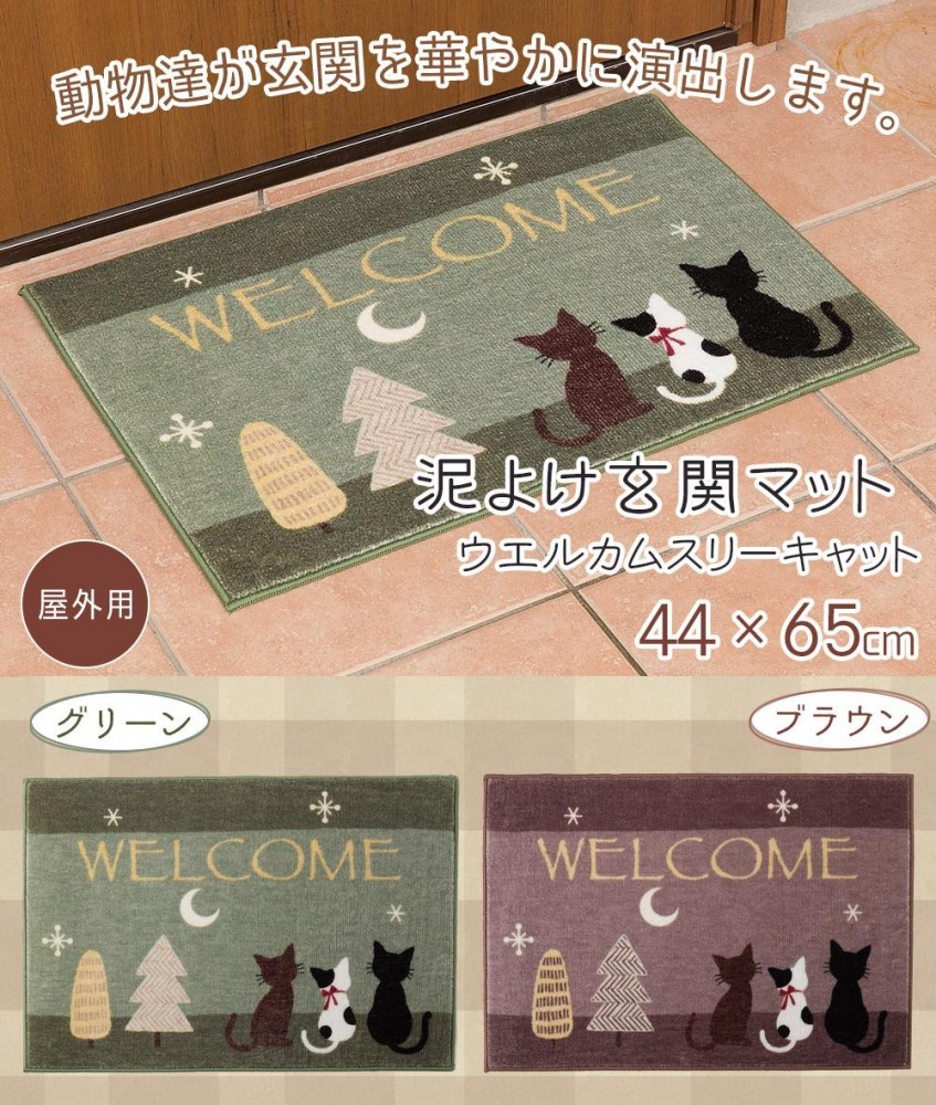 | 落ち着いた色合いと可愛らしいデザインの屋外用玄関マット♪汚れたら水洗いでき、裏面には滑りにくい加工を施しているので横ズレしにくいです。 |