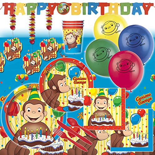-. Title : Deluxe Curious George Childrens Birthday Party Pack Decoration Kit For 16
