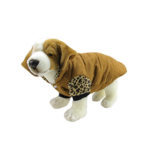 -. Feature : Paw print fashion dog jacket / Warm mocha brown and leopard print design / Snap closure / Fleece lined / For small dogs